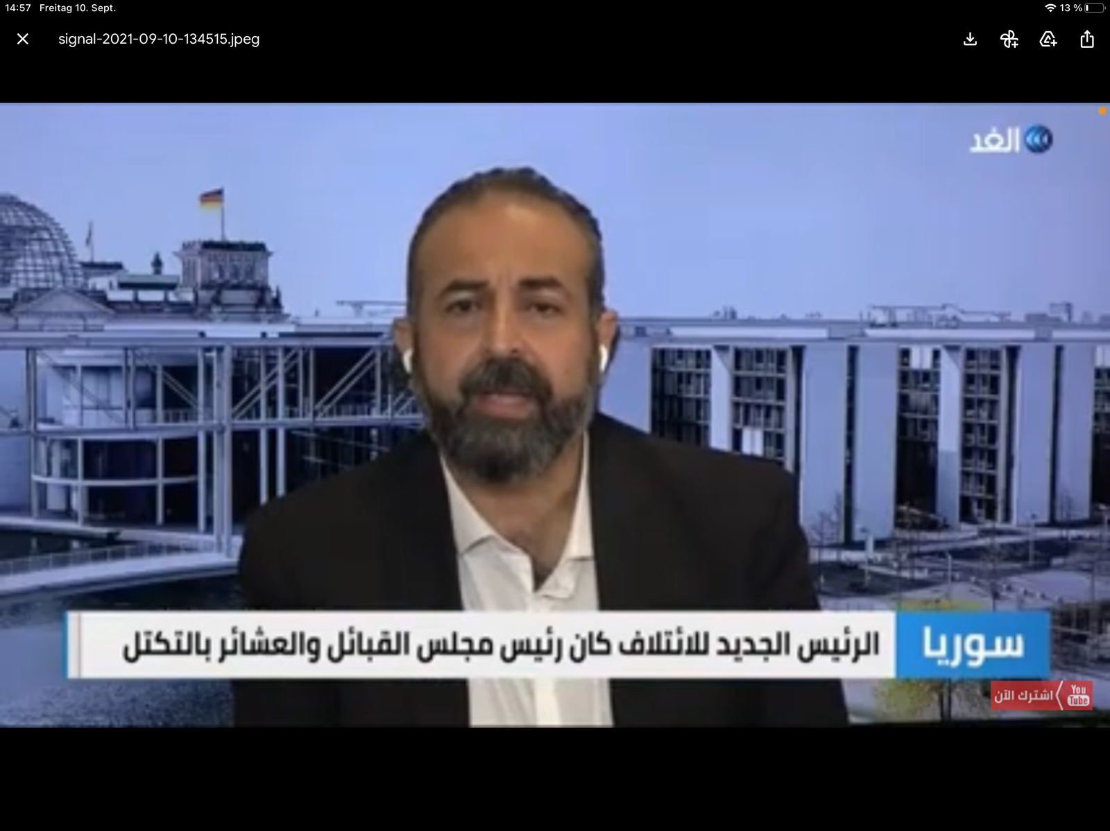 حوار مع الزميل رئيس الحزب عن الإئتلاف السوري على قناة الغد