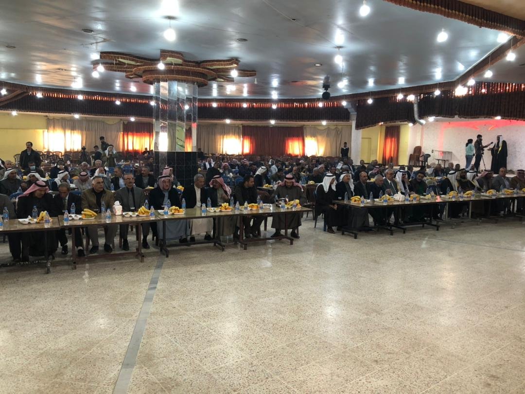 وعلقت في قاعة الاجتماع يافطة مكتوب عليها “مهما اختلفنا في عقائدنا وقومياتنا وانتماءاتنا الدينية والعشائرية سوف نبقى دوماً أرواحاً في جسد واحد واخواناً في وطن واحد”.